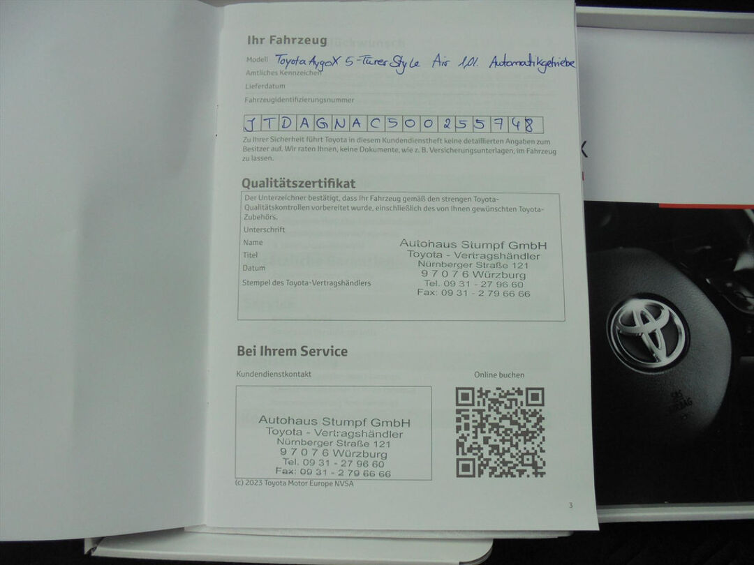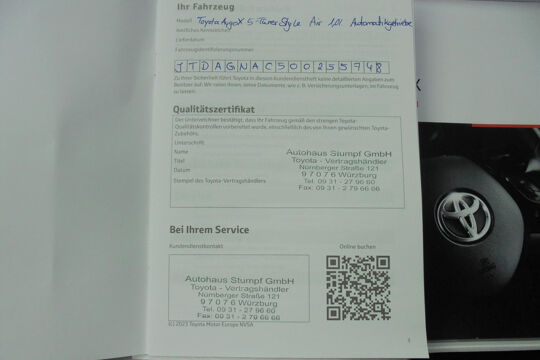 Deze Aygo X hebben we gekocht bij Toyota dealer Stumpf uit Würzburg. De auto is zo jong ( 29-01-2025 ) dat hij zijn eerste onderhoudsbeurt nog moet krijgen.....