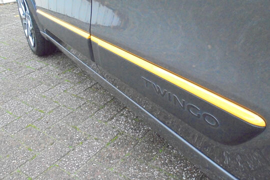 Wat vind je van de kleurtjes van deze Twingo ?? De sjieke grijze hoofdkleur gecombineerd met de grappige, sportieve gele accenten....