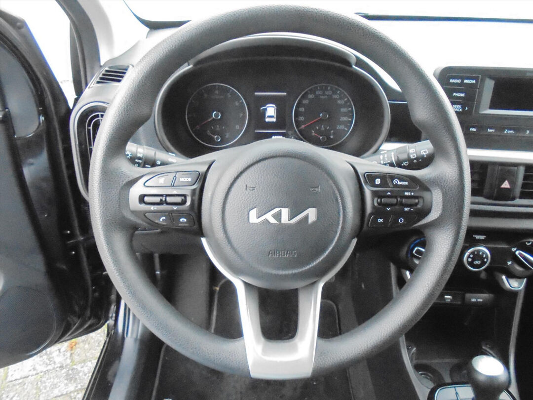 Deze Picanto is uitgerust met o.a.: airconditioning, prachtige 15 inch lichtmetalen velgen met all sason banden, privacy glass, mistlampen voor, audio met USB en stuurbediening, cruise control om de snelheid vast te zetten, 2 elektrische ramen, centrale vergrendeling met afstandsbediening, reservewiel, bestuurdersstoel is in hoogte verstelbaar. bluetooth om je telefoon te koppelen, Auora black metallic lak enz....